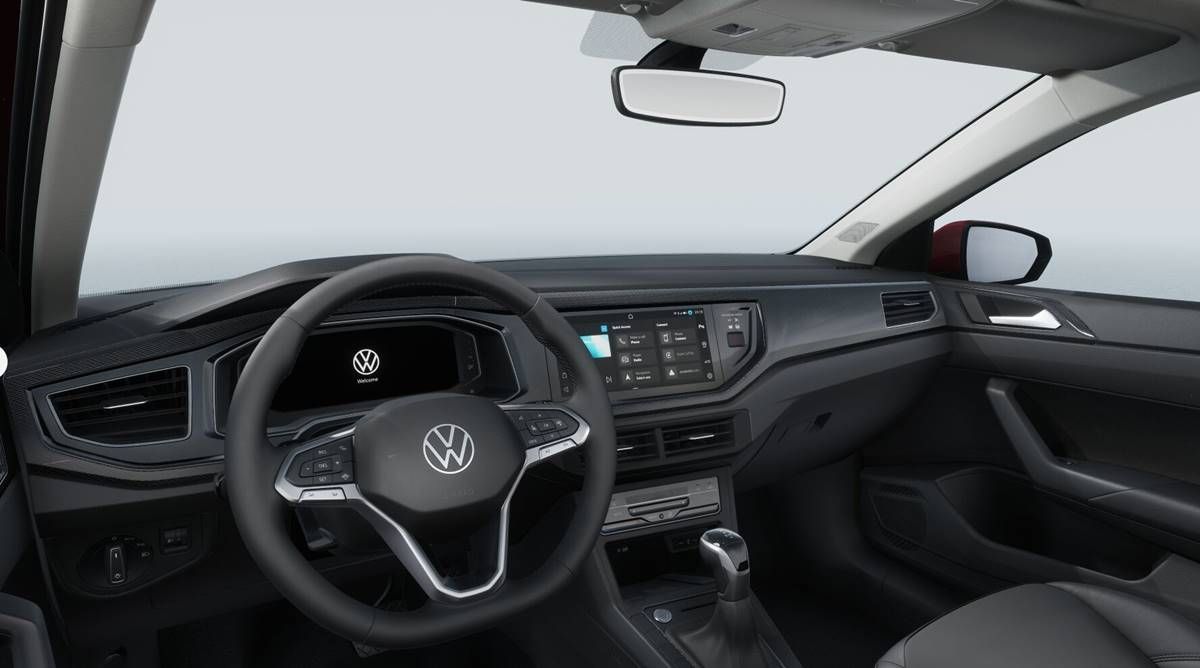 O acabamento interno traz painel digital configurável, central multimídia VW Play de 10 polegadas com conexão sem fio e volante multifuncional. Há também carregador por indução e ar-condicionado digital.